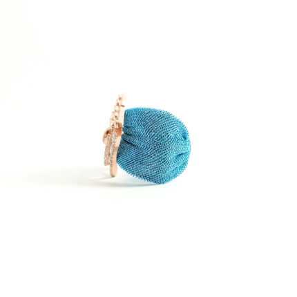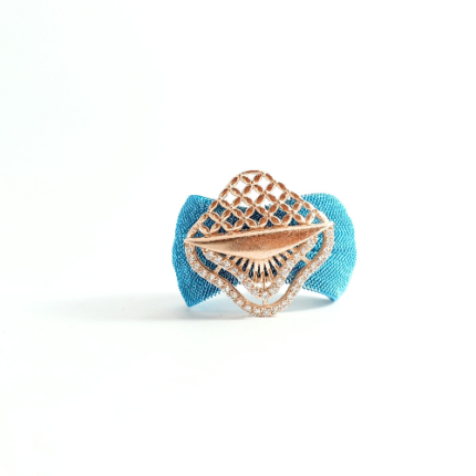 Exquisite Turkish Rose Gold Ring with Blue Mesh and Crystal Accents